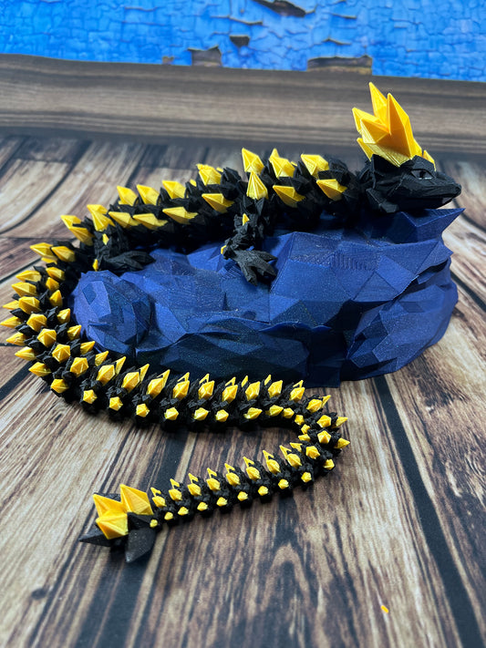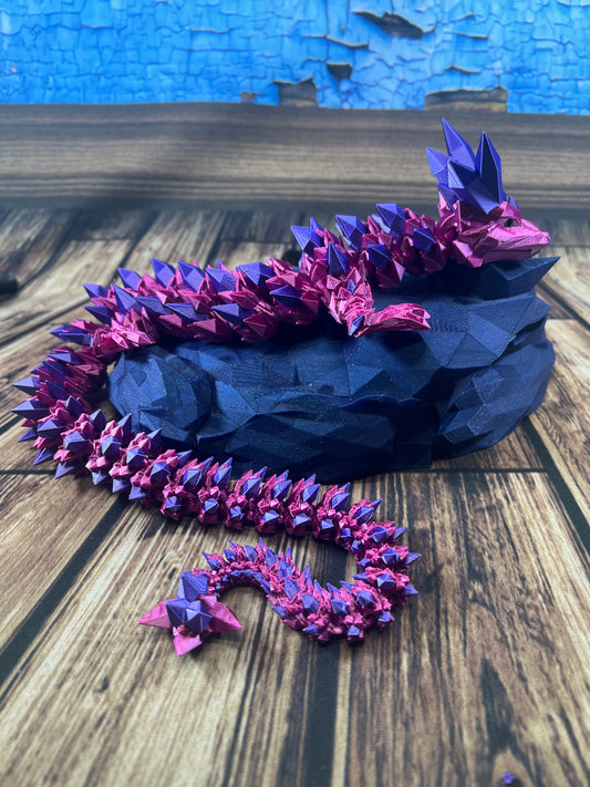 Theses Dragons have more "pointed" spikes and are fully articulating and can be played with or posed in several different configurations. Great gift idea for friends and family or even for yourself these awesome dragons make great "Sensory toys" or decorations for any interior location. GEMS & DISPLAY ARE NOT INCLUDED WITH THE DRAGONS.