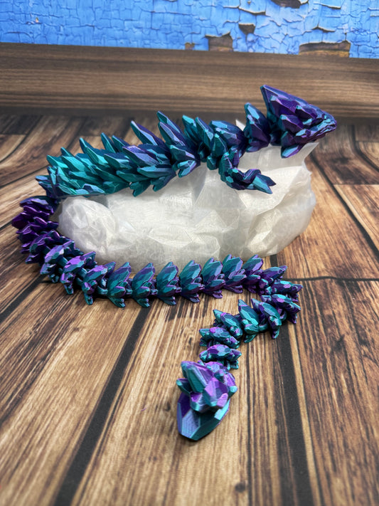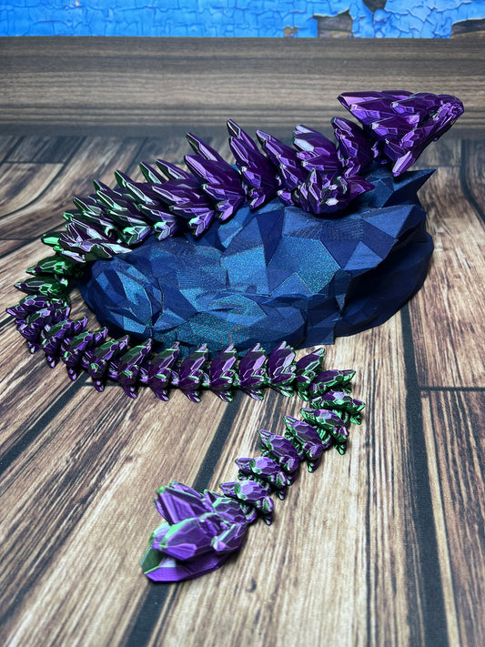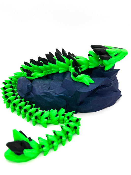 These Dragons have a more rounded type of "spike" and are fully articulating to be played with or posed in several different configurations. Great gift idea for friends and family or even for yourself. These awesome dragons make great "Sensory toys" or decorations for any interior location. GEMS & DISPLAY ARE NOT INCLUDED WITH THE DRAGONS.